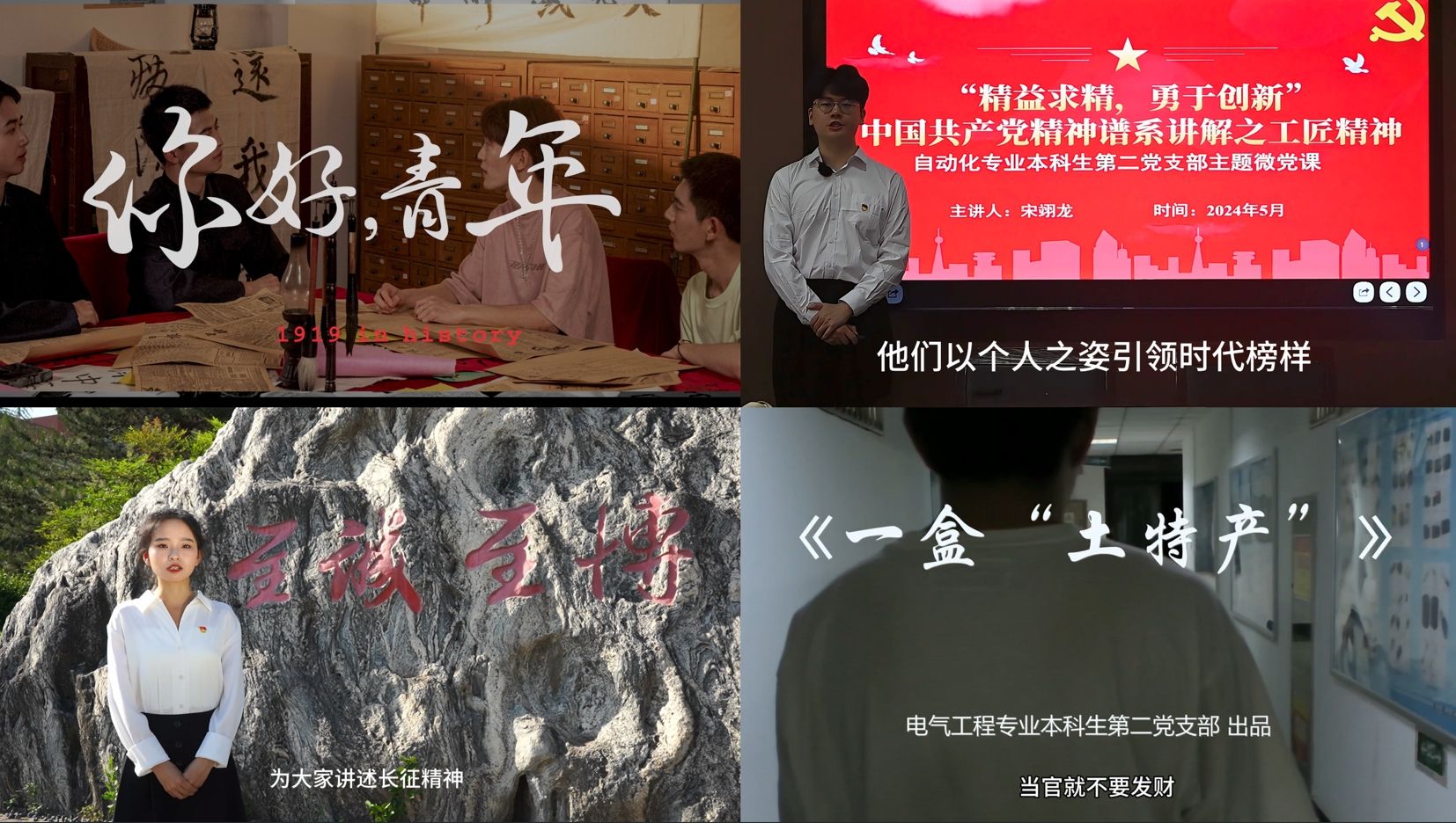 其中由电气工程专业本科生第一党支部与自动化专业本科生第一党支部联合推出的视频《你好,青年》已在中国教育在线、陕西科技大学等平台进行展播,该视频通过短剧形式,将五四精神的内涵融入故事叙事中,展现出不同时代青年的特征,进一步达到激励青年学生的积极作用。
