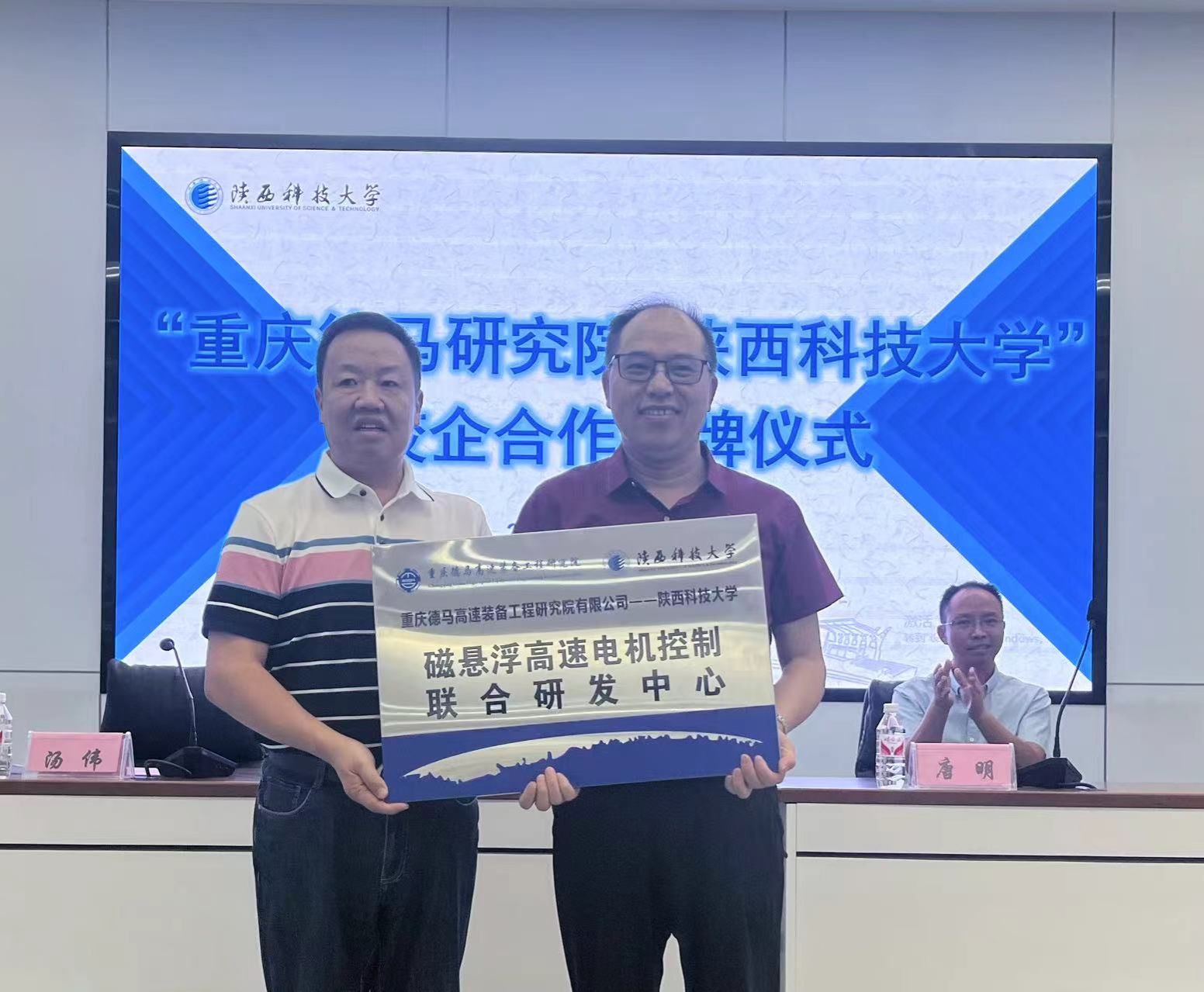 仪式第二阶段,举行了重庆德马高速装备工程研究院与环球360会员注册共建磁悬浮高速电机控制联合研发中心”校企合作授牌仪式。