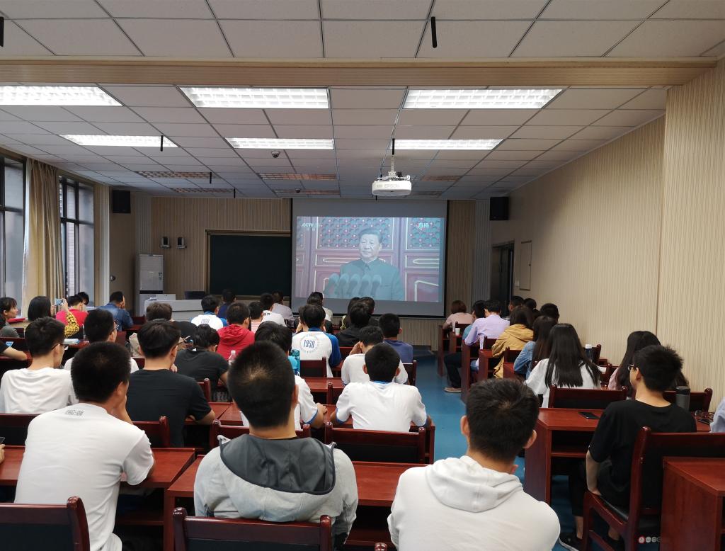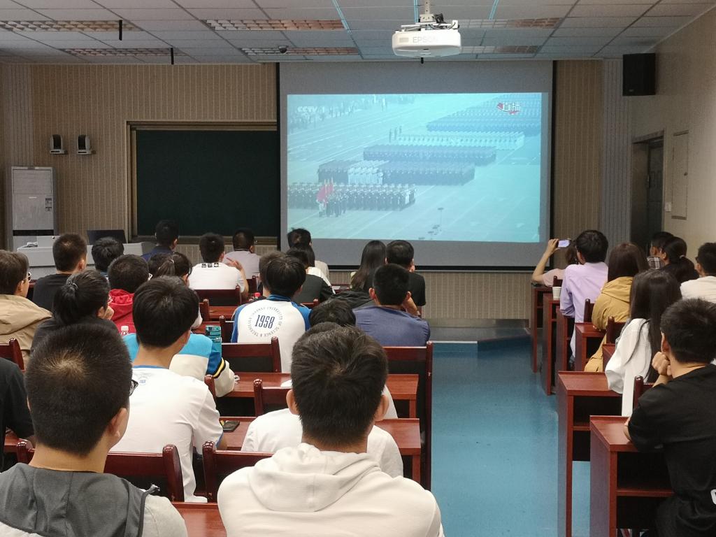 2019年10月1日上午9点,环球360会员注册班子成员、党支部书记、部分学生党员及团员在实验楼2B211集中收看庆祝新中国成立70周年大会直播。