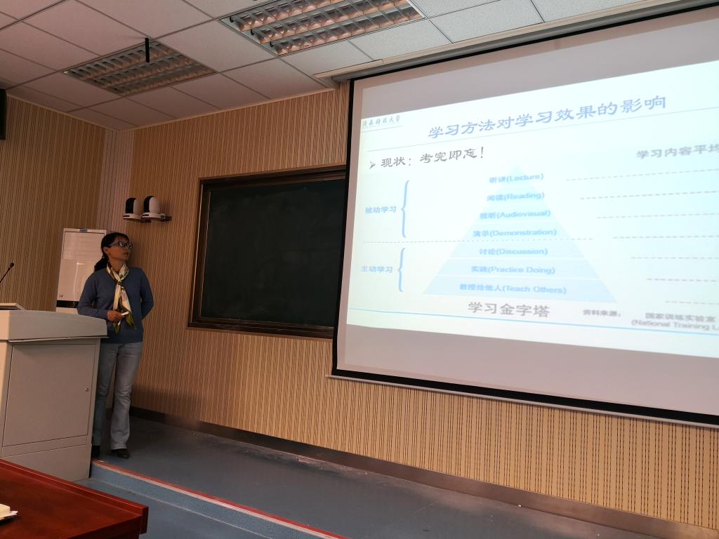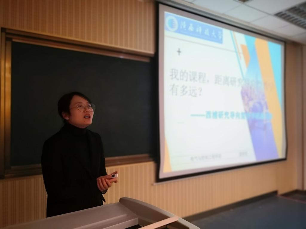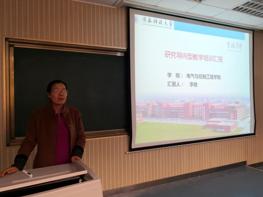 报告会上,康家玉老师做了题为《研究导向型教学——学习与体会》的报告,她从本科生教学存在的问题、研究导向型教学的学习内容以及参加培训教学的收获三个方面入手,重点就什么是研究导向型教学、如何开展研究导向型教学、如何保障研究导向型教学质量和如何以学生为中心进行教学设计、课程改革做了分析和汇报。她强调开展研究导向型教学,构建以学生为中心,其重点是改革教学方法和手段,以问题驱动教学,从问题出发,引导学生启发思维和自我学习的能力。