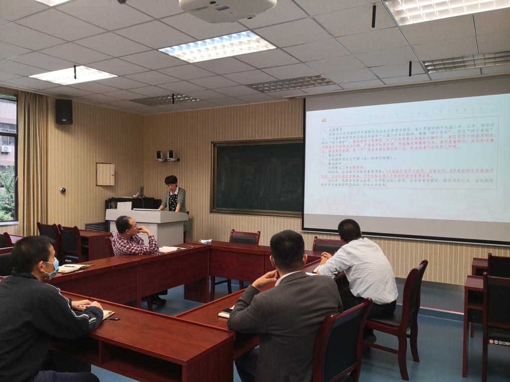 学院党委副书记安玲首先传达了校党委专项整治相关通知文件精神及工作安排;随后带领与会人员学习全面从严治党提出过程、基本内涵、意义作用和实践要求,并将近年来习近平总书记关于全面从严治党的精妙比喻以及2020年全面从严治党相关论述进行了梳理学习,结合《党委(党组)落实全面从严治党主体责任规定》学习党委落实全面从严治党主体责任清单、任务清单;最后,通过近期陕西省教育系统工程建设腐败案例开展警示教育。