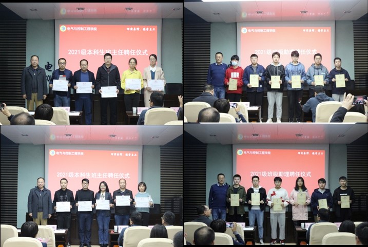 院长汤伟为2021级本科生班主任颁发聘书,副院长周强为2021级本科生班级助理颁发聘书。