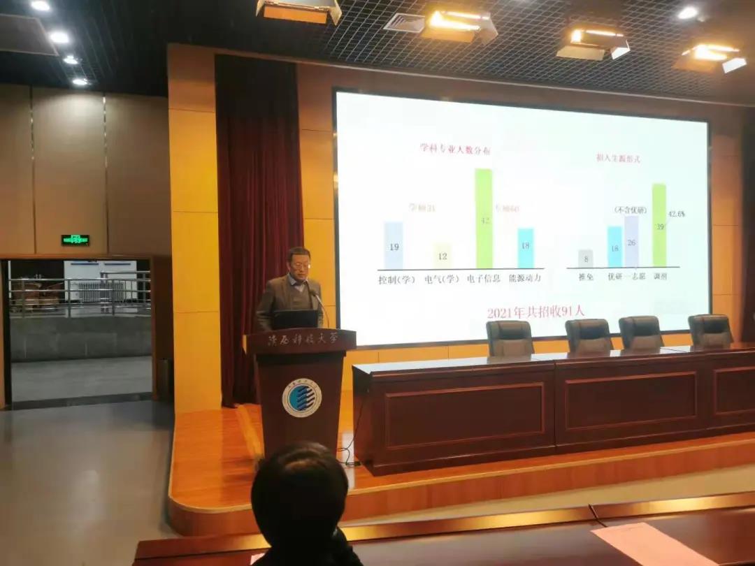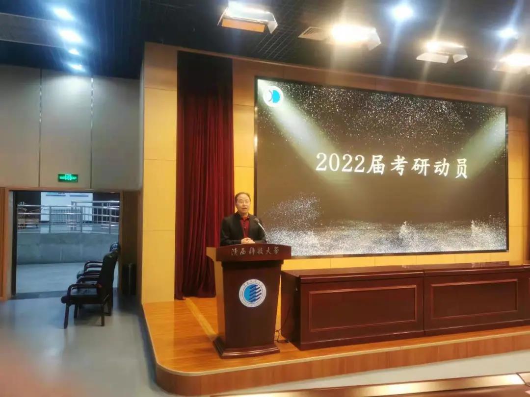 汤伟从认清形势、认真备战、注意方法三个方面对2022届学生进行了考研动员,他强调所有学生应正确评判自己、正确选择发展方向、正确选择考研类别,在认清形势的前提下,要为奋斗目标全力以赴,注重专业基础知识学习运用,安排好复习进程,兼顾好考研复习与专业课学习,同时叮嘱学生,在高强度的学习压力之下注意锻炼和饮食,确保身心健康。