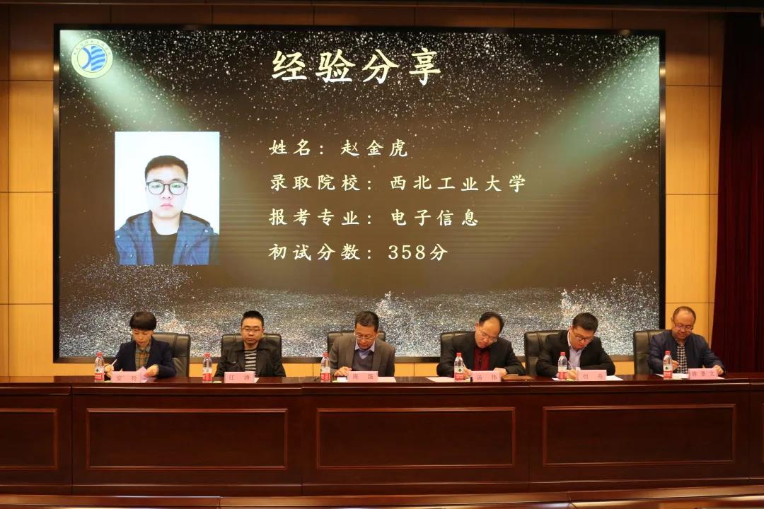 考研学生代表赵金虎、程毓杰分享考研经历和学习经验,为2022届考研学生加油鼓劲。