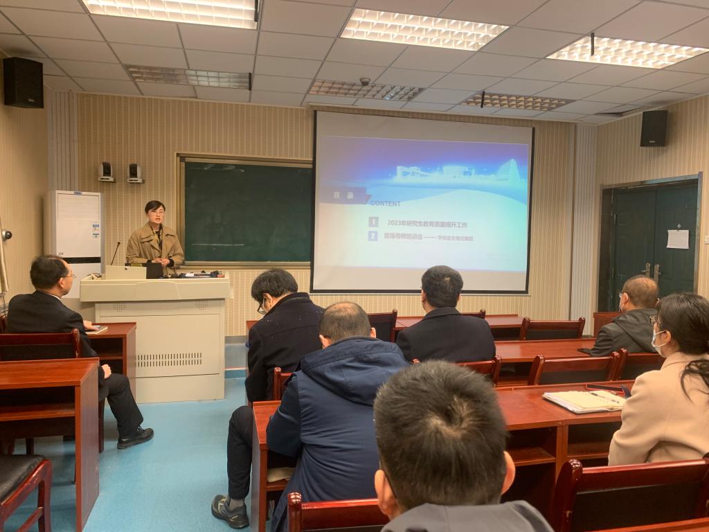 会议第一阶段,杨南就学院2023年研究生教育质量提升工作进行阶段性汇报,并对重点工作继续推进进行部署安排。2023年春学期初,学院针对研究生教育工作提出了研究生学位论文质量提升,研究生导师指导能力提升,研究生学术交流能力提升“三项能力提升计划”。会上,杨南对落实“三项能力提升计划”出台和优化的关于学位论文格式审查、研究生招生指标分配、研究生导师培训等管理制度以及具体制度实施的工作进展进行了汇报,并分别从学院、导师角度对做好各项研究生管理工作,充分履行“导师第一责任人”职责明确了各自分工。