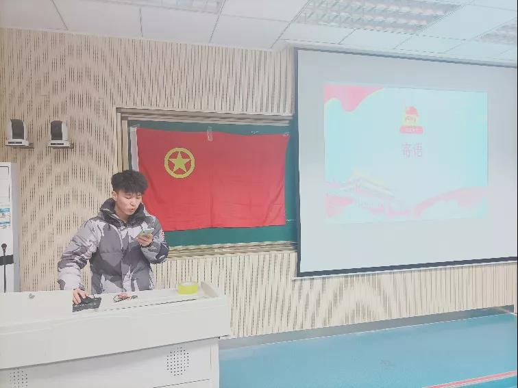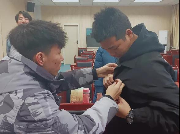 宋拓达同学宣读了新加入团组织成员的名单。由宋拓达同学和贾梓萌同学为新团员佩戴团徽。