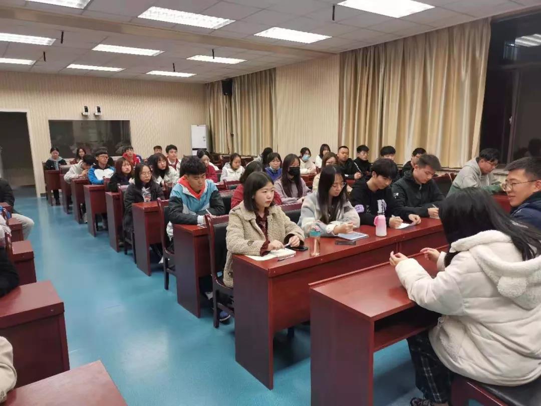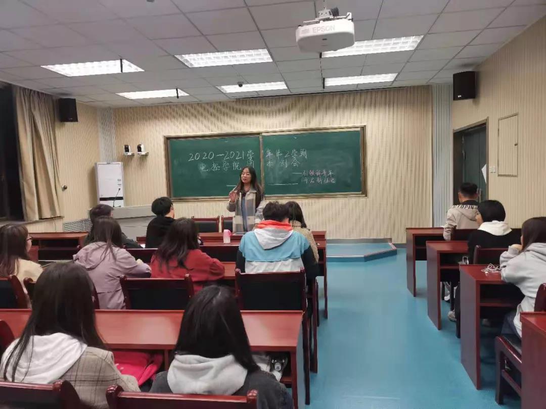 会议开始,首先由关玉辉老师发表讲话。他先向参会成员分享了自己大学时期的学生组织工作经历与心得,然后对上学期学院团委工作做出总结,指出了工作中存在的问题与改进方向,同时对全体团委干部及干事的工作积极性提出表扬。会议还提到,2021年是建党100周年,学院团委是一个充满政治性、组织性的先进集体,应当起好带头作用,趁青春年少,努力拼搏,不负韶华!