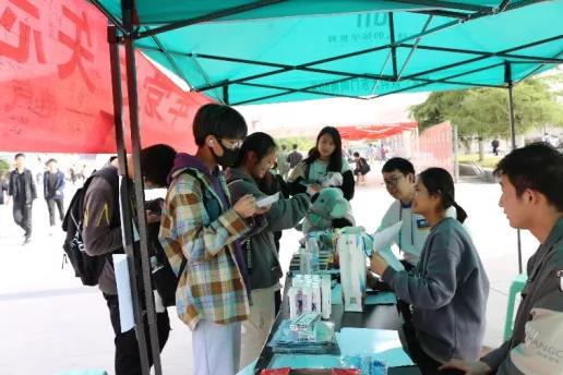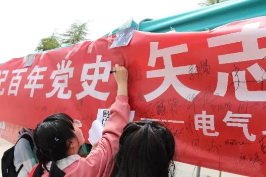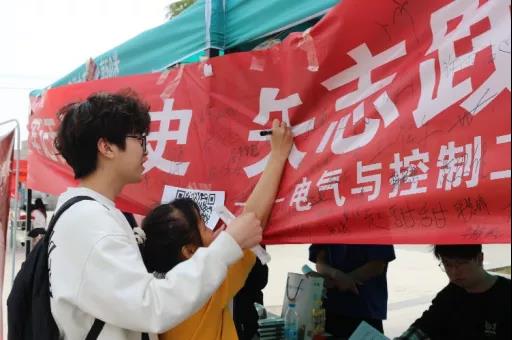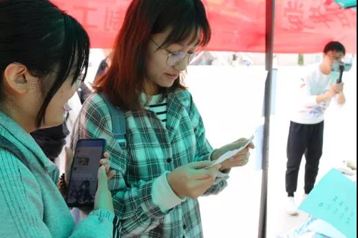 线下活动在沁园广场如期举行,活动现场,同学们激情高涨,纷纷上前在横幅上签下自己的名字,抽取相关题目进行竞答。