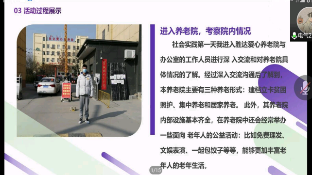受疫情影响,电控学子们以自主实施,不聚集,不扎堆,不跨区域流动为原则,采取线上线下相结合的方式,积极创新实践方式开展社会实践活动。此次参与答辩的同学们围绕“新冠疫情”、“脱贫攻坚”、“回访母校”、“学习党史”等主题阐述了实践项目立意,实践经过、实践结果及实践中的亮点,也分享了自己的心得体会。