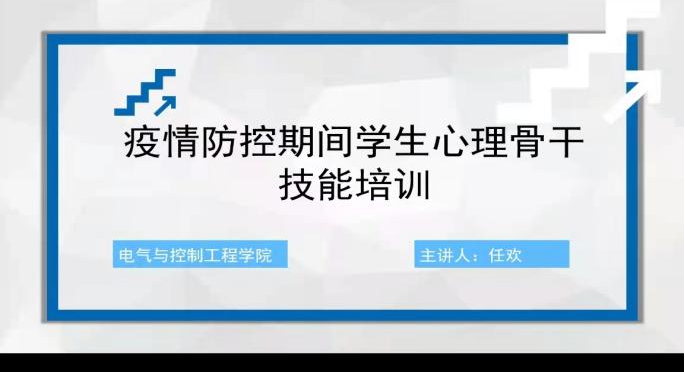 杏雨梨云,春意阑珊。在这个春暖花开的阳春三月,环球360会员注册于3月20日开展疫情防控期间学生心理骨干技能培训。此次培训对象为心协成员,班委以及宿舍长,目的是培养大家识别心理危机的能力,教会各学生心理骨干如何帮助他人,以及介绍各种心理自助方法。整场培训由任欢老师讲解。