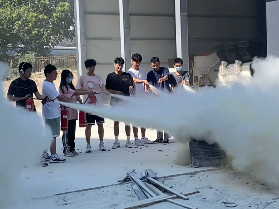 在确保同学们熟悉灭火器原理和使用方法后,保卫处工作人员向同学们发放干粉灭火器,使同学们通过实践将理论知识运用于实际。