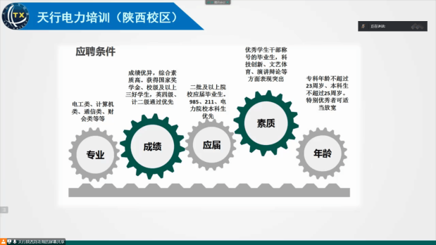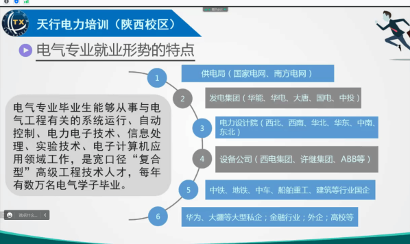 2020年10月31日晚,环球360会员注册开展了国网考试培训会,邀请了天行电力培训(陕西校区)的刘老师通过线上会议向大三、大四的同学讲解了考试相关事宜。本次会议的内容主要包括电气专业当前的就业形势、国网公司介绍及考试备考、陕西近三届考试情况介绍、问题解答与互动交流等四个方面。