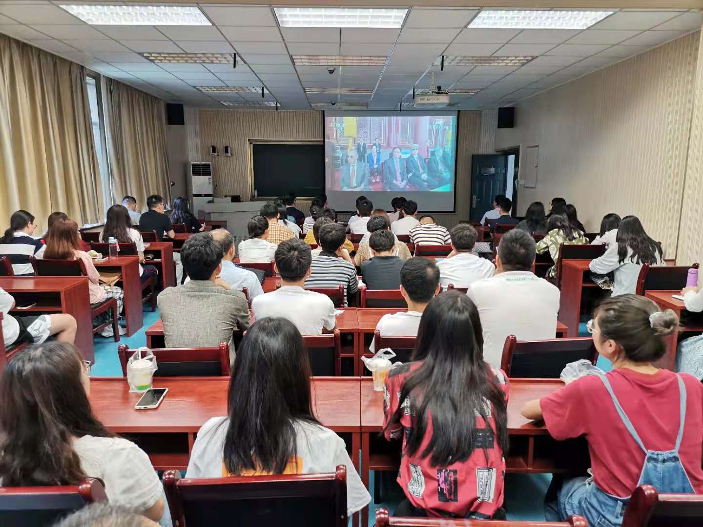 7月1日,在落实新冠肺炎疫情防控要求的情况下,环球360会员注册党委组织师生党员集中观看庆祝中国共产党成立100周年大会,聆听习近平总书记重要讲话的所思所想所感。