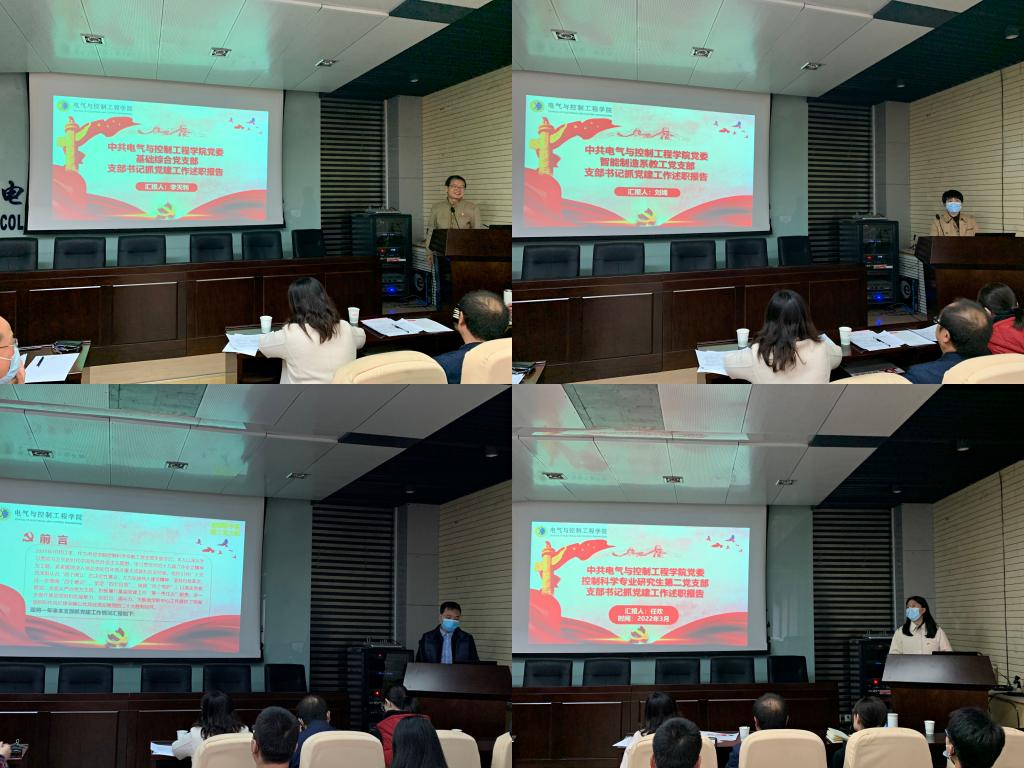 学院四名教工党支部书记、五名本科生党支部书记、四名研究生党支部书记依次上台进行述职。根据学院党委考核要求,各支部书记围绕“七个有力”,对标“七个一”工程,全面总结2021年全年支部工作开展情况;通过校企联合共建等方式进行交流学习,汲取党建工作经验;挖掘支部特色,凝练党建主题,创建推选标杆支部;发挥党员先锋模范作用,树立先进学习榜样,以党建带团建,注重政治功能的发挥;认真分析支部当前建设存在的问题,提出下一步的工作思路和改进举措。