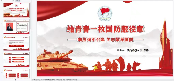 5月9日晚智能制造专业本科生党支部书记李静老师线上为发展对象开展了以“给青春一枚国防服役章”为主题的课程,李静老师先从公民的权利和义务开始,给发展对象详细全面地叙述了公民的国防权利,国防义务和服兵役的义务。又给大家介绍了海军陆战队的学霸侦察兵—宋玺,一“声”到一“生”的95后邓若斌这些优秀的年轻军人,旨在让发展对象强化国防观念,履行兵役义务,保卫人民安康,成为一名有责任、有骨气、有血性的人。