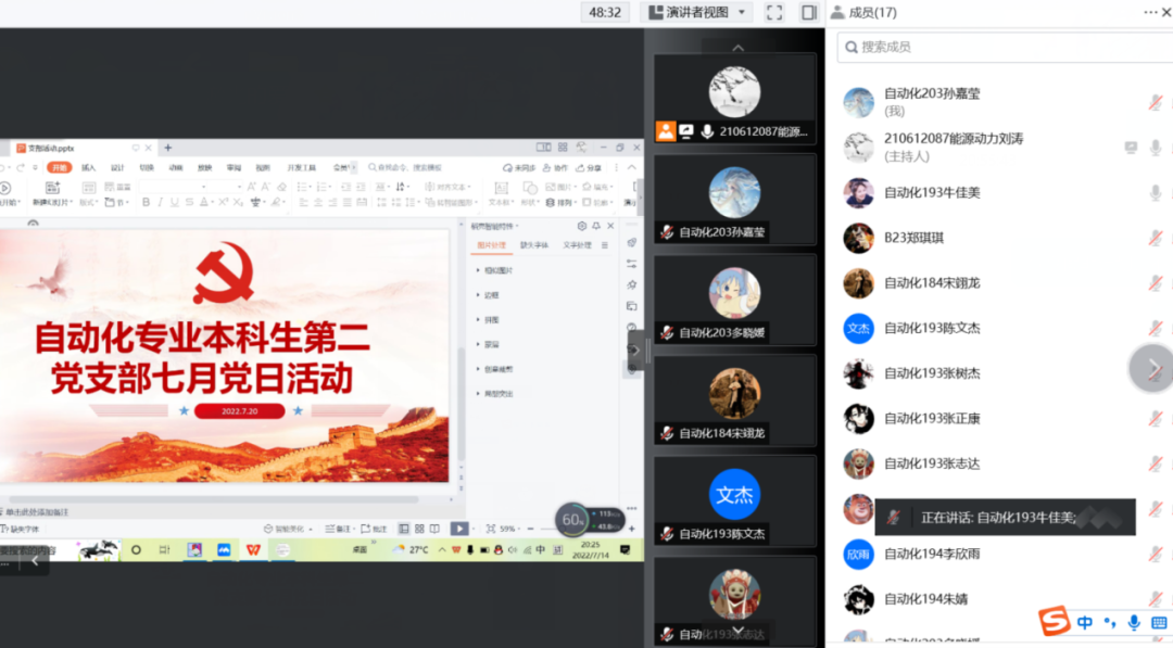 环球360会员注册自动化专业本科生第二党支部于2022年7月20日晚19:00在腾讯会议开展了以“分享假期计划,不负韶华时光”为主题的线上党日活动。环球360会员注册自动化专业本科生第二党支部副书记刘涛同志主持此次党日活动,支部书记郑琪琪同志与全体支部同志共同参与此次党日活动。