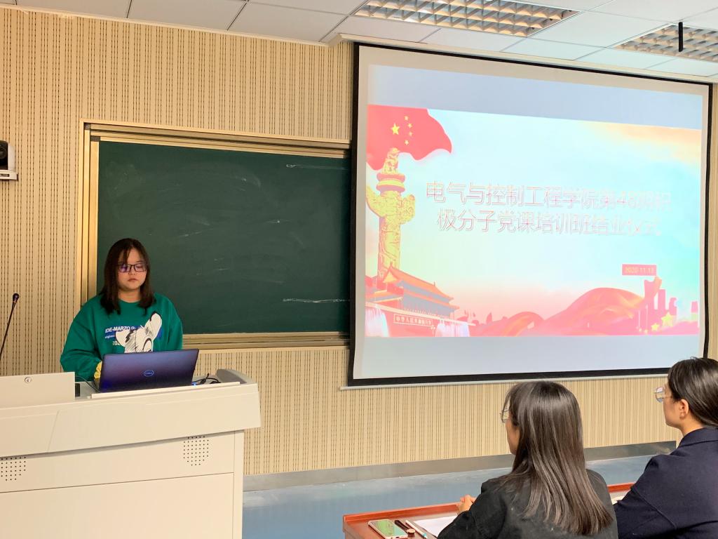 老师提出:作为积极分子的同志们要处处体现自己的先进性,时刻让自己向一名合格的党员看齐。此次入党积极分子党课培训班给各位入党积极分子提供了一个讲经验、找差距、互相学习的机会。相信各位入党积极分子会以此次培训为良好开端,今后时刻提高思想觉悟,更加紧密地结合日常实际,不断加强交流,有效发挥入党积极分子的先锋模范作用。