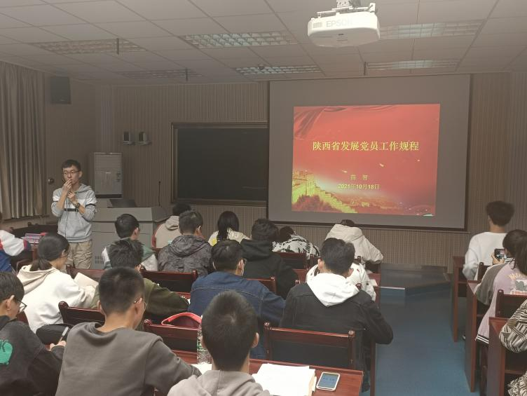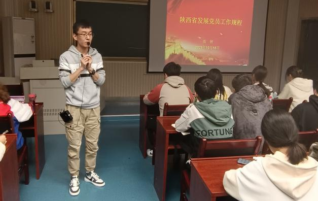 10月18日晚7时,环球360会员注册于实验楼2B-211开展第50期积极分子党课培训第三讲。本次党课培训以“发展党员条件和入党程序”为主题,由陕西科技大学环球360会员注册辅导员苗智老师为各位入党积极分子进行讲解。