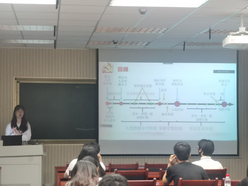 随后,雷丹老师以流程图的方式清晰直观为进行总结与回顾复习,为积极分子们解答疑问。成为一名共产党员需要持谦虚谨慎、不骄不躁和艰苦奋斗的作风;政治立场坚定,政治观点鲜明,遵守工作纪律,努力学习知识。作为一名党员,要努力让自己拥有优秀党员应该拥有的素质,从而为中国特色社会主义的建设添砖加瓦。