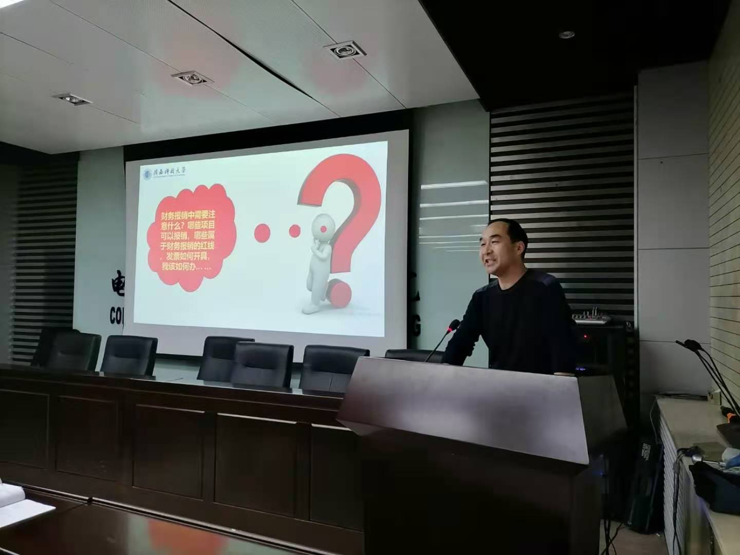 张学平对学校财务处人员情况、机构情况、财务制度建设情况及主要的财务制度进行了简要介绍,针对现金结算、转账结算、固定资产等内容详细讲解了财务报销前需要了解的问题事项,通过几例真假发票、真假业务的对比说明发票相关问题,结合专家劳务费、评审费发放,以及差旅费报销、科研经费报销等与教师密切相关的实际问题进行财务报销详细解读,报告过程中细致强调需要重点关注的环节和风险点,并指出财务报销要本着实事求是的原则,注意细节、注意程序,不钻空子,才能不碰纪律红线。